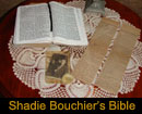 Enclosed with the Bible, was a letter penned with the following words:“I am pleased that this Bible is finally somewhere it can be treasured. Obviously Shadie’s children kept the Bible realizing how much God’s word meant to their mother. I’ve no idea how this dear Bible ended up in an antique shop in Marietta, Georgia. I hope this arrives safely and is loved for both its historical value, but more importantly, for the words on the pages. I noticed some of the newspaper clippings seem to be from a local paper in your area.”