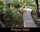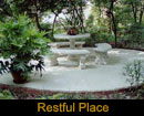 A calming woodland garden is located behind Retreat on Main, as well as both  cottages.  Winding gravel & brick  walks connect the houses.  Benches and  paired seating are found throughout this serene garden area.  A prayer walk provides a resting bench for  quiet time in a quiet place.  In the  center of the woodland garden, a shaded circular picnic area views a lovely fountain.  Many varieties of trees and plantings,  including a period camellia garden are along the walk.