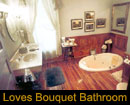 Bath Amenities: * Sunken whirlpool for two * Large Kohler shower * Double sink vanity * Hairdryer * All natural ingredient Inn personalized toiletries: (4) Soaps: Rosemary & Thyme glycerin, Tea Olive, and Unscented oatmeal and Bath Gel * Herb bath grains * Shampoo * Conditioner * Shower cap * Sewing kit * Nail board * Q-tip * Cotton ball, cosmetic pad & make-up remover towelette * Night light * Hand Mirror
