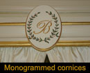 Perfect for a romantic getaway! This light and airy bedroom reflects its name. Pearl green and blue walls impart a calming effect. Luxurious, coordinating Ralph Lauren bedding. Two stately wing chairs are grouped for a shared reading space or conversation. An additional comfy period chair is placed in a corner for a quiet escape with a good read. The original window cornices have been artfully embellished to include elegant monogramming.