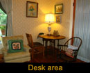 Named after Bonnie's former antique shop in Florida, and shaded by dogwoods and magnolia, the rear grounds of The Main House can be viewed from this warm and welcoming room. A gateleg drop leaf table is roomy for paperwork or dining. Palette is green, blue and ecru, with black accents.